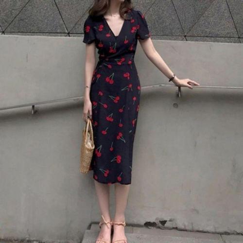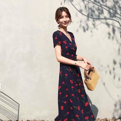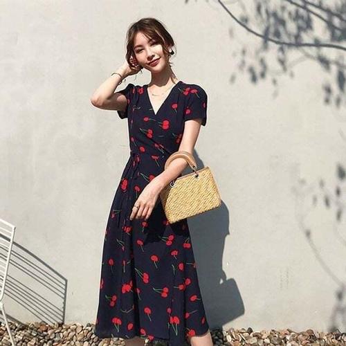 [셀럽하우스]귀여운 EPJN5890 체리 포인트 여름 브이넥 데일리 여자 원피스
