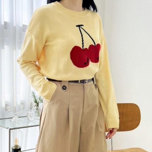 귀여운니트 여자 웨어 라운드티 체리니트 러블리 WFKOIV5