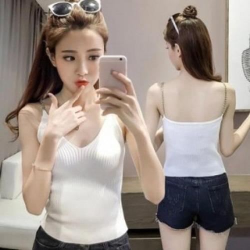 여성용 힙한 체인 실키 캡내장 크롭나시 2색