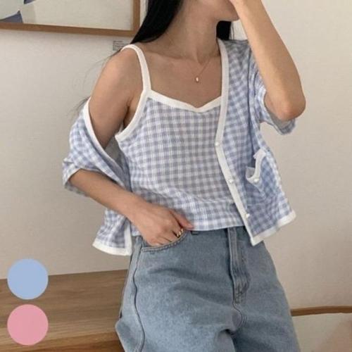 [엄지척]배색 체크 의류 빅사이즈 세트 306P515S 가디건_19800661_667501