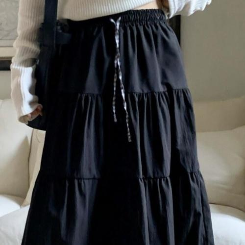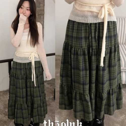 [신상오픈런]여자 가을 프릴 레이어드 캉캉 언발 체크 롱스커트