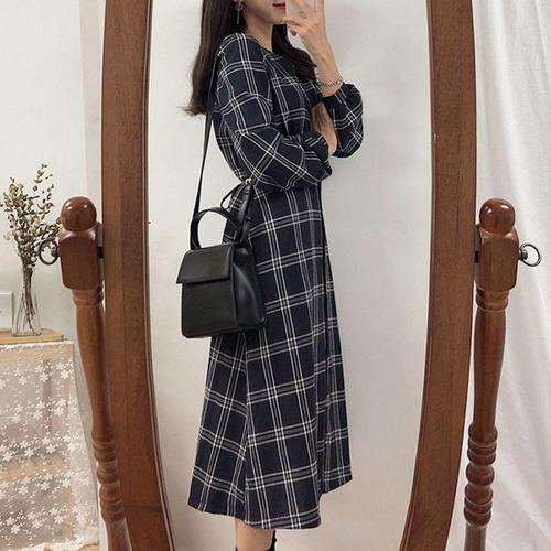 [셀럽하우스]여성 NTMM5243 가을 체크셔츠롱원피스 여자 긴팔롱원피스 2컬러