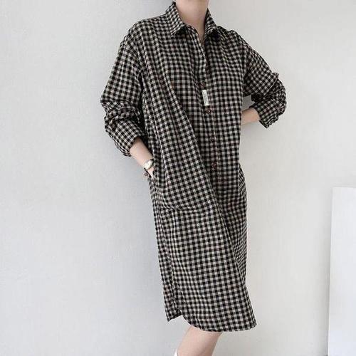 [다잇템_패션]여자 드레스 주머니 롱남방 깅엄체크 FW 셔츠