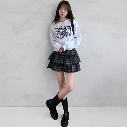 옷자락 / 여성 힙무드 체크 면혼방 캉캉 프릴 미니 스커트