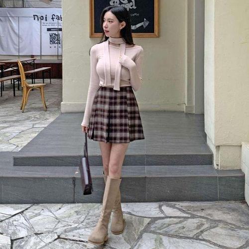[오노마] ONM 여자 겨울 가을 데이트 룩 체크 미니 스커트 숏 치마