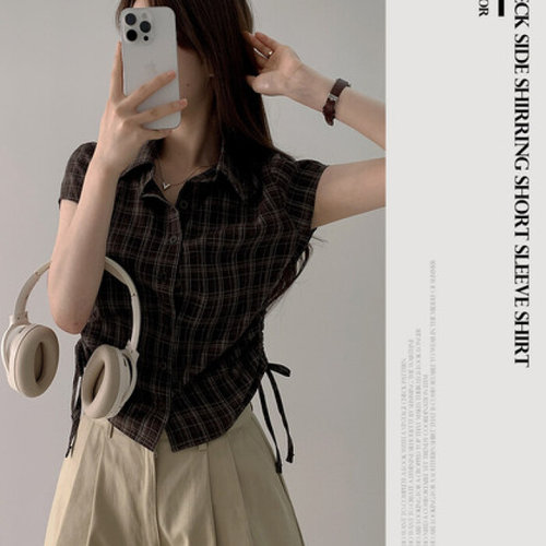 더핑크 / 다프 체크 사이드 옆 셔링 반팔 셔츠