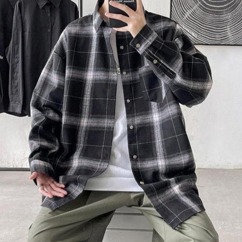 체크셔츠 남자 오버핏 타탄 캐주얼 긴팔 셔츠 남방