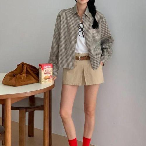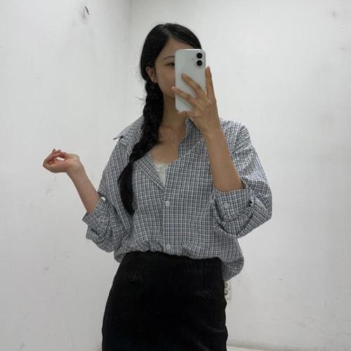 [다잇템]여성 언발 박시핏 잔잔체크 클래식 면원단 셔츠