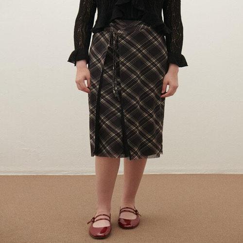 [샤틴]체크 패턴 벨트 스커트/S253C302