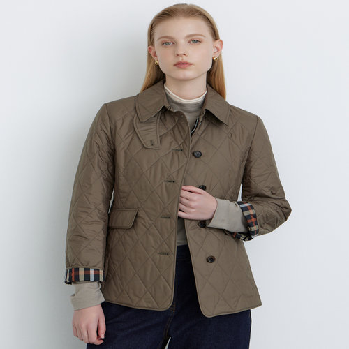 닥스 여성 [클리어런스][퀼팅] 카키 체크 안감 숏 퀼팅 점퍼 (DLJU4DE91K2)