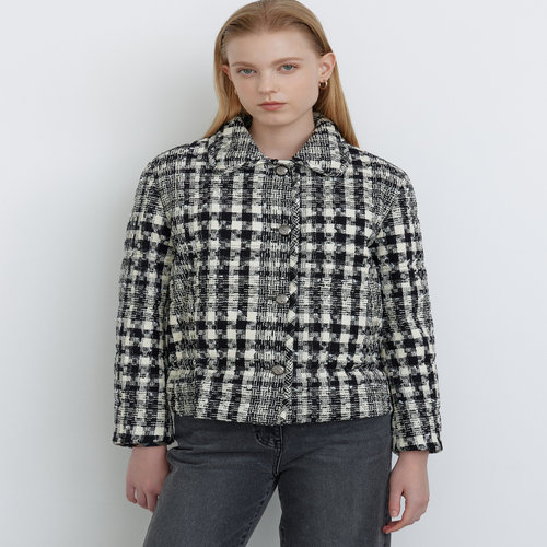 [헬렌]헬렌 겨울 하객룩 체크 자켓 숏 코트 퀄팅 안감 앤키