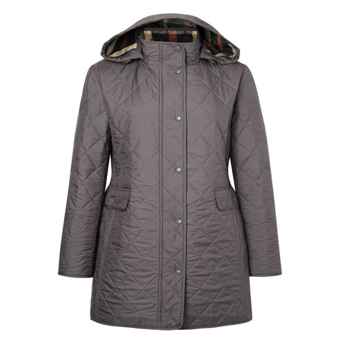 닥스 여성 [클리어런스][퀼팅] 그레이 탈착 후드 체크 배색 하프 퀼팅 점퍼 (DLJU4DE93G3)