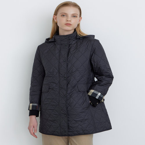 닥스 여성 [클리어런스][퀼팅] 네이비 체크 배색 탈착 후드 숏 퀼팅 점퍼 (DLJU4DE95N2)