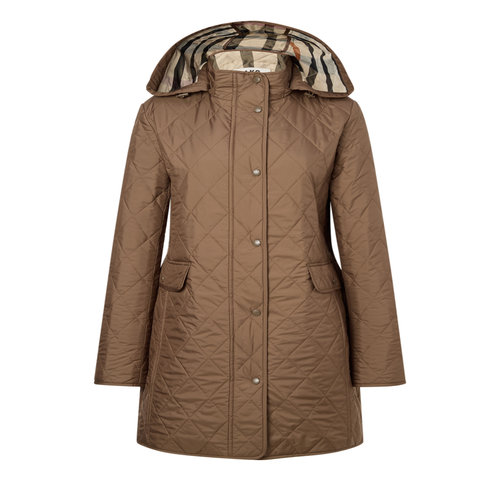 헤지스 여성 24FW 클리어런스퀼팅 베이지 체크 안감 롱 퀼팅 점퍼 HSJU4DC92I2