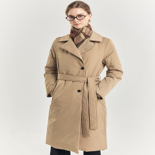 헤지스 여성 [클리어런스][구스다운] 베이지 체크 안감 논퀼팅 롱 중량다운 점퍼 (HSJU4D910I2)