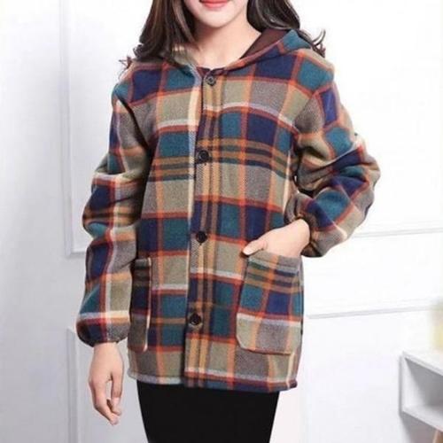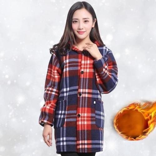 체크 후드 코트 여성 겨울 플리스 가을 롱코트 WFLRZKA