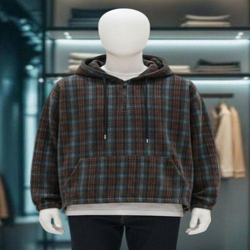 [피클]윈터 체크 후리스 아노락 후드 티셔츠