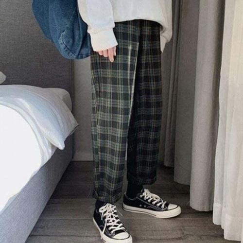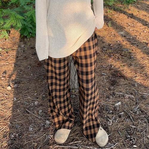 가을 겨울 체크 와이드 팬츠 남녀공용