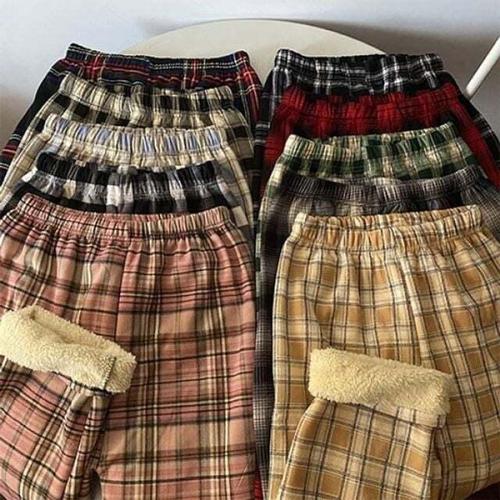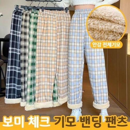 [셀럽하우스]뽀글이 GDTL2955 바지 데일리 체크 기모 보온 팬츠 따뜻한 캐주