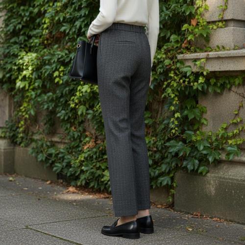 [옷자락]여성 클래식 모직 잔체크 언발 뒷밴딩 슬랙스