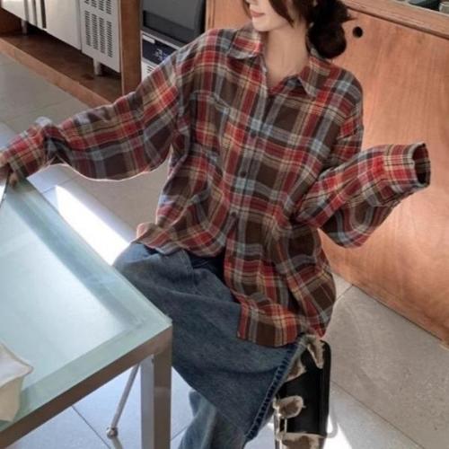 [엄지척]여성 와이셔츠 오버핏 체크 셔츠 남방 긴팔 깔끔한_19627584_667501