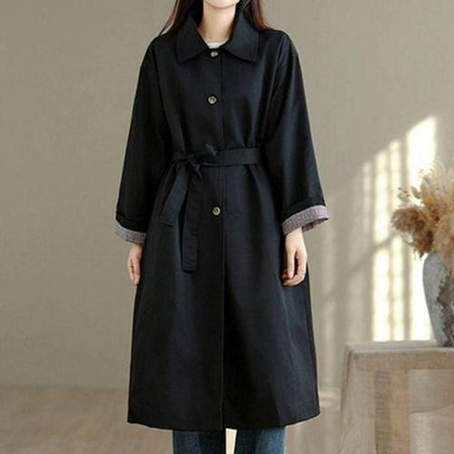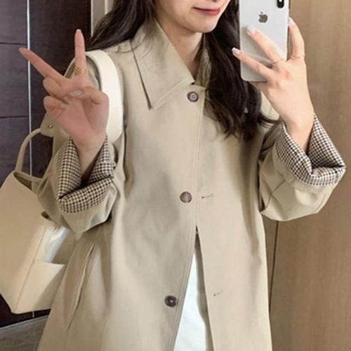 [셀러허브_여성트랜드패션]여성 심플한 체크소매 트렌치코트 봄 가을 클래식한