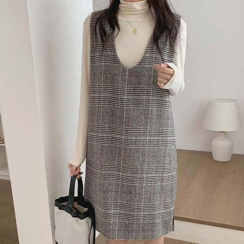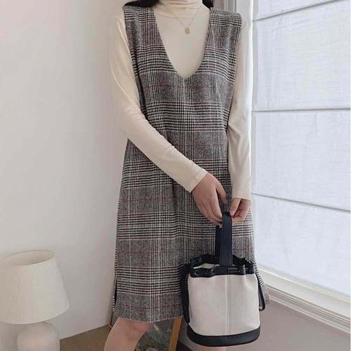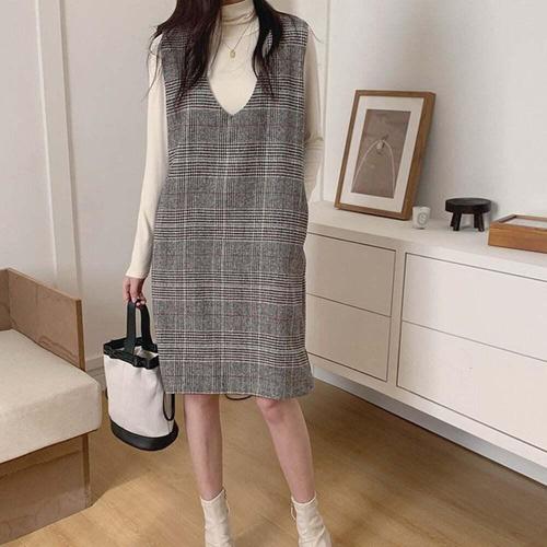 [셀럽하우스]체크패턴 WQEM5042 민소매 V넥 원피스 H라인 밑단트임