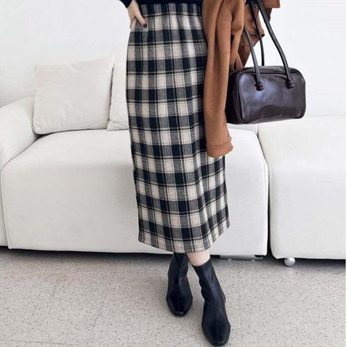 [셀럽하우스]런던 YSRO3327 체크 여자 H라인 뒤트임 기모안감 롱스커트