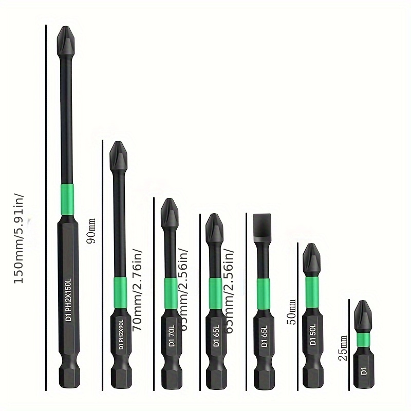 TEMU 7피스 스크루드라이버 비트 세트 - PH2 자석 필립스 & 플랫헤드 비트, 미끄럼 방지 이빨, 내구성, 다기능 도구 액세서리, 임팩트 드릴용, 초경질, 고자성, S2 강재, 산업용 등급, DIY 프로젝트 / 전문가용, 기계공 및 DIY 애호가용