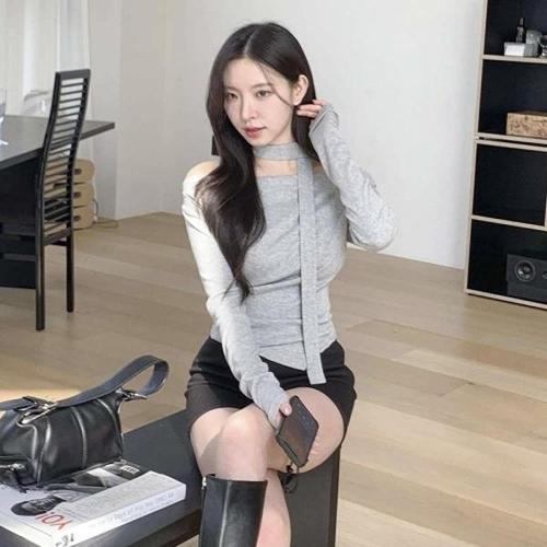 [다잇템][다잇템] 여성 탱크 원오프숄더 초커넥 슬림핏 긴팔티_20581249_588872