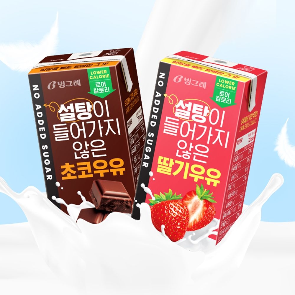 [빙그레] 설탕이 들어가지 않은 우유 2종 190ml 24팩 /초코/딸기/무설탕
