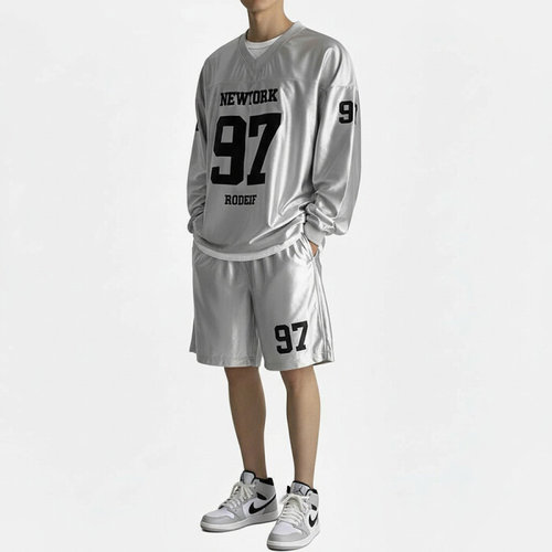 20024 야외 스포츠 스타일 남자 세트 농구 세트 여름 해변 휴가 레저 착용 남자 홈 느슨한 편안한 잠옷