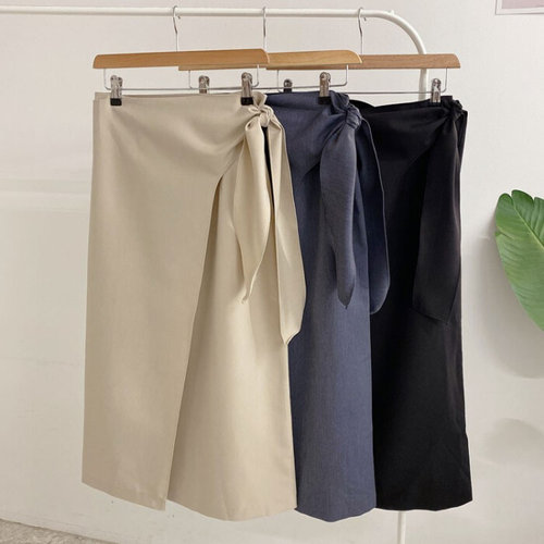 허니제이 / 2사이즈 루비즈 허리 리본 랩 롱 스커트(3color)