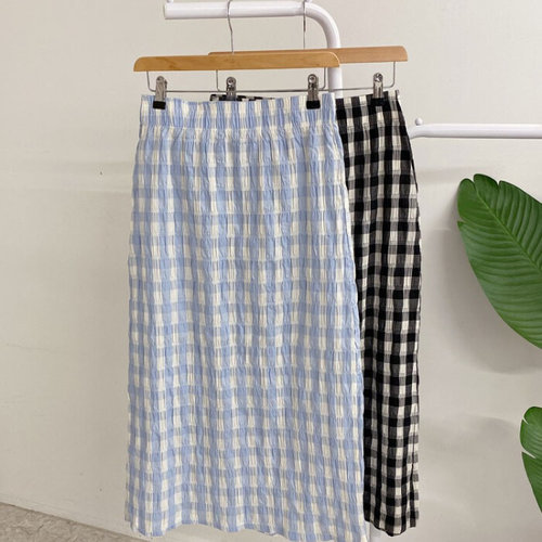 허니제이 / 타코린 체크 주름 일자핏 밴딩 롱 스커트(2color)