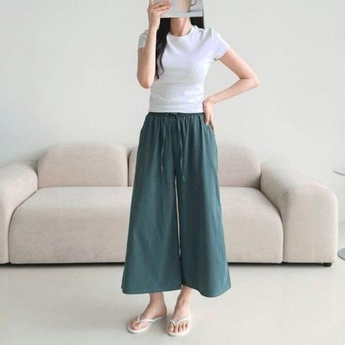 라부라카 여름 여자 밴딩슬랙스 7부 와이드팬츠 편한 통 바지 오버핏 치마바지 슬랙스 바지 빅사이즈 KS63