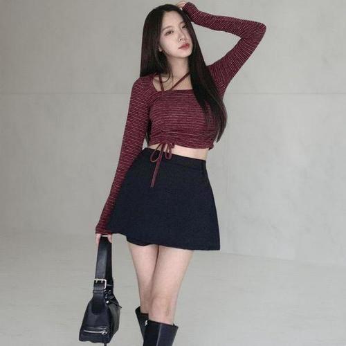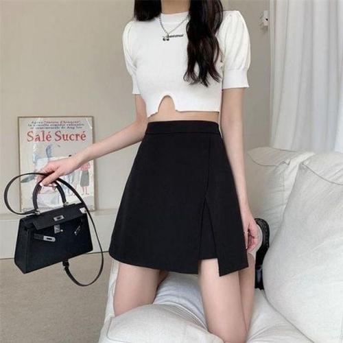 [다잇템][다잇템] 여자 사이드슬릿 편한 속치마바지 혁대 에이라인 미니스커트_23764193_588872