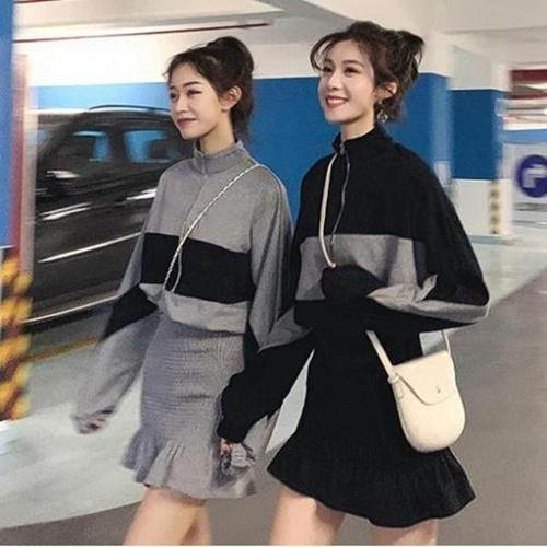 [옷자락]여자 캐쥬얼 카라넥 스웨터 롱 슬림 앞지퍼 SS 원피스