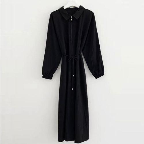 [엄지척]앞지퍼 카라 여성 긴팔 캐주얼 롱 프론트 심플 원피스_19911394_667501