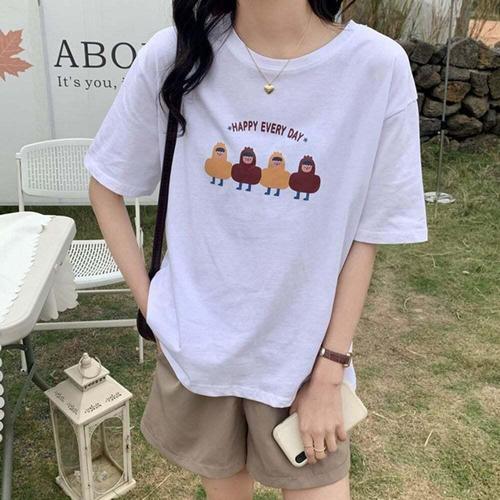 [셀럽하우스]여자 MROC7857 해피치킨 스타일 프린팅 반팔 박스티 고품질 오