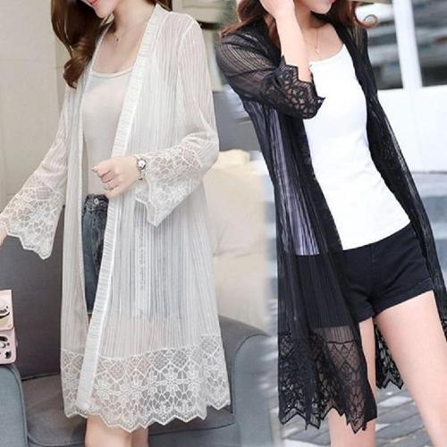 여름 여성 얇은 7부 로브가디건 롱가디건 시스루 비치로브 쿨가디건