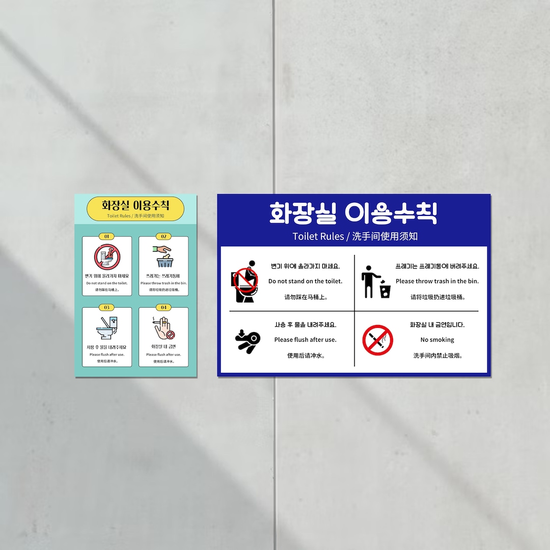 화장실 이용수칙 안내문 사용방법 외국인 영어 에티켓 예절 표지판 중국어 규칙 외국어 부착형