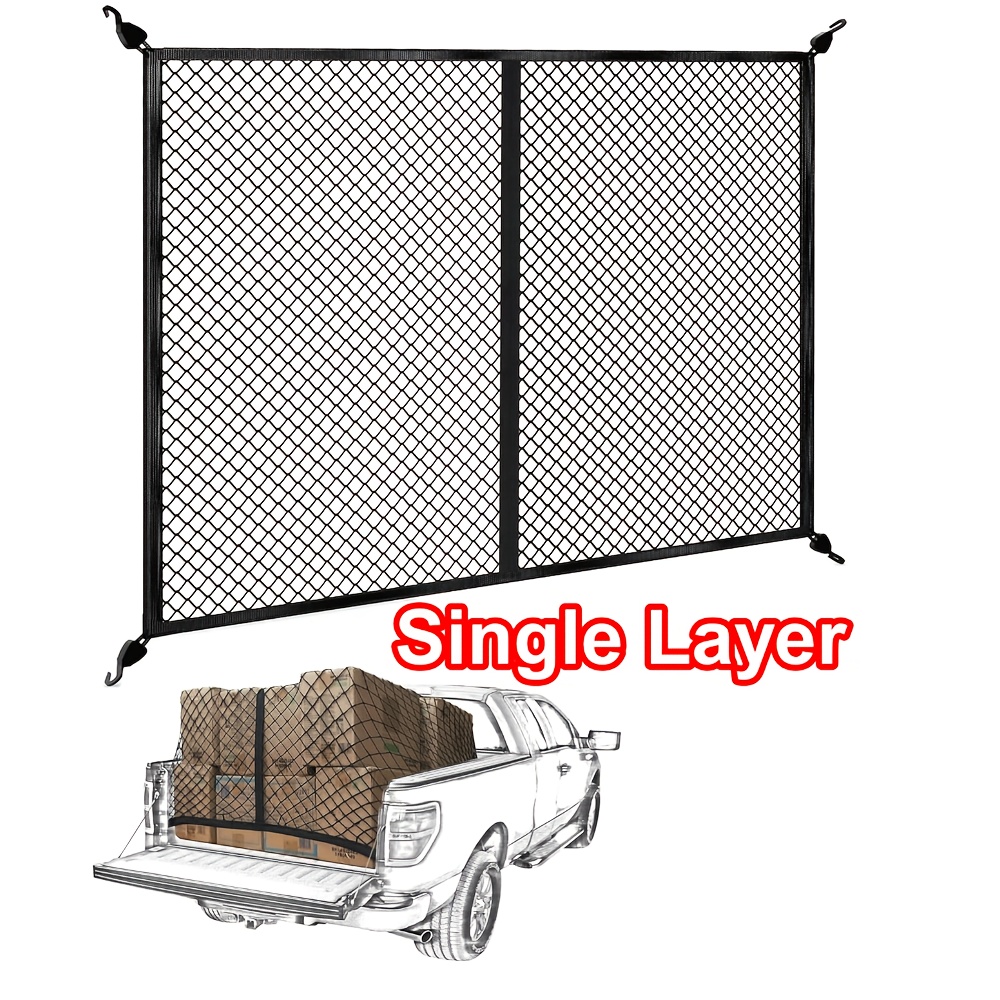 TEMU 고탄성 카고 넷, 간단한 트럭 베드 카고 메쉬 정리함, 일상적인 가벼운 트럭 하중에 적합, 3.3'x4'는 5.8'x7'까지, 4'x4'는 7'x7'까지 늘어남, 픽업, 트레일러, SUV, ATV/UTV용(더블 레이어)