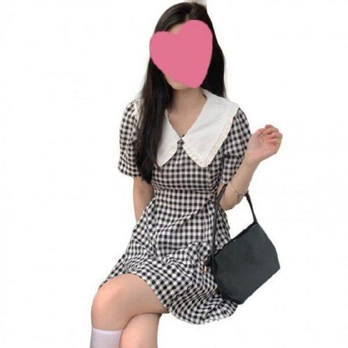 [모노무드]LMO 그리드패턴 빅카라 반소매 썸머 페미닌 롱드레스 숏 트렌디레이디스 미니스커트
