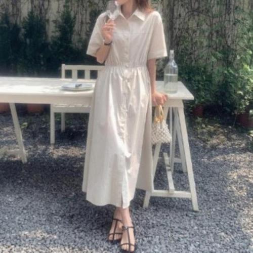 [다잇템][다잇템] 여성용 드로우코드 미니멀리즘 허리 롱 카라 반소매 남방 원피스_23027234_588872