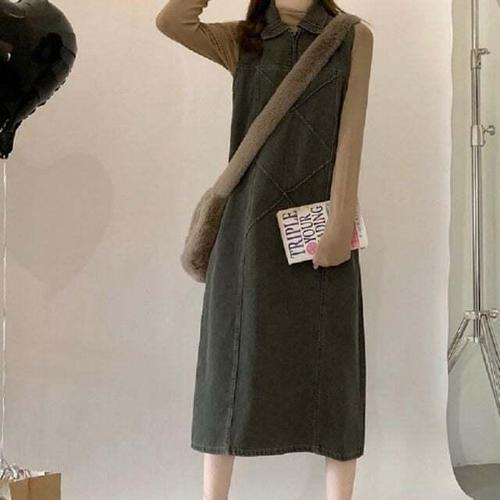 [셀럽하우스]빈티지 DKMY3561 데님 데일리 민소매 카라 클래식 원피스