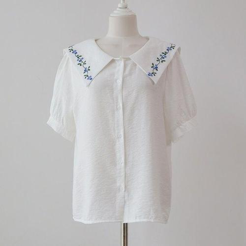 [옷은날개] 여성 자수 단추 반팔 블라우스 1P 프릴카라 셔츠 여름