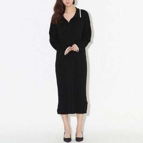 [엄지척]데일리 원피스 니트 배색원피스 긴팔 일자 카라 카라_19913129_667501