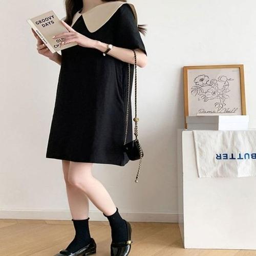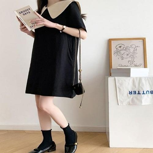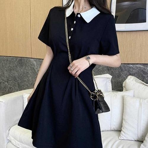 [엄지척]여성 여름 반팔 배색 와이드 카라 러블리 블랙 원피스_19910672_667501