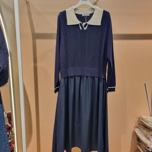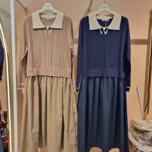 라티움 HC34 스텐카라 니트상의 상하배색 니트 롱 원피스 T2541op01