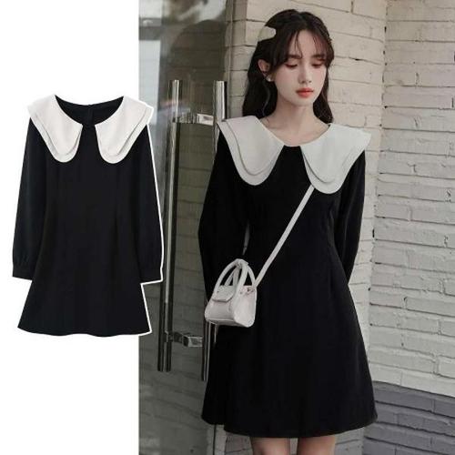 [엄지척]여자 배색 와이드 블랙 원피스 러블리 카라 하객룩_19912883_667501